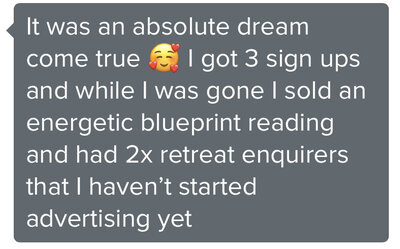 I loved the combination of 1:1 and group. You knew where I was in my business, I felt seen and heard. It helped me to take even more action.