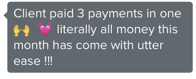I would go into overworking mode. I had a trickle of clients but I was really undercharging and giving a lot and I had really bad boundaries with clients because I felt like I “needed the money”. Generally I was at 1-2k cash per month but I was working SO much.